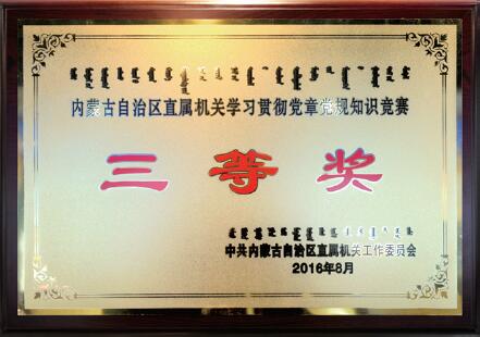 代表區局參加自治區直屬機關學習貫徹黨章黨規知識競賽獲三等獎(二O一六年)