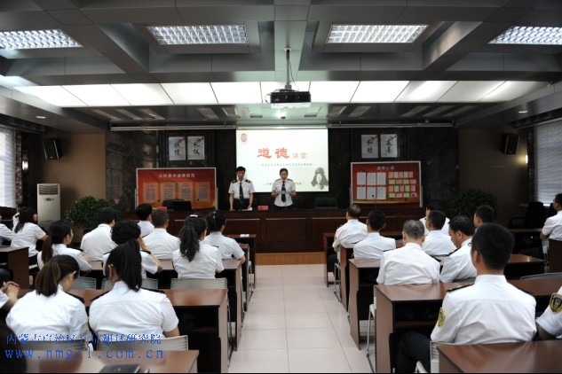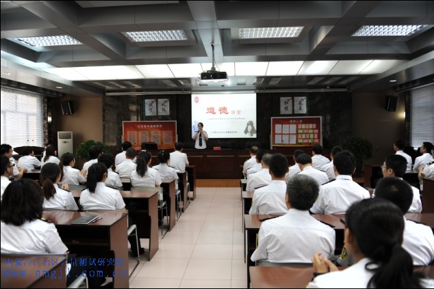 ??? 計量院把“道德講堂”建設作為當前和今后一個時期精神文明建設的一項重點工作,道德講堂在內(nèi)容上突出核心價值理念,以社會公德、職業(yè)道德、家庭美德、個人品德等“四德”為主線,積極倡導助人為樂、愛崗敬業(yè)、誠實守信等中華傳統(tǒng)美德。在運作機制上精心設計了“唱、學、誦、發(fā)、送”五個環(huán)節(jié)的流程,即:“唱首歌”,每一次開講前,組織學唱一首道德主題歌曲;“學模范”,組織觀看一部道德建設先進人物事跡短片;“誦經(jīng)典”,組織誦讀一段中華傳統(tǒng)經(jīng)典語錄和經(jīng)典格言;“發(fā)善心”,聽課后講述心中感受,感悟道德力量,升華自身境界;“送吉祥”,由主持人為大家送一句祝福的話語或唱一首祝福歌曲。